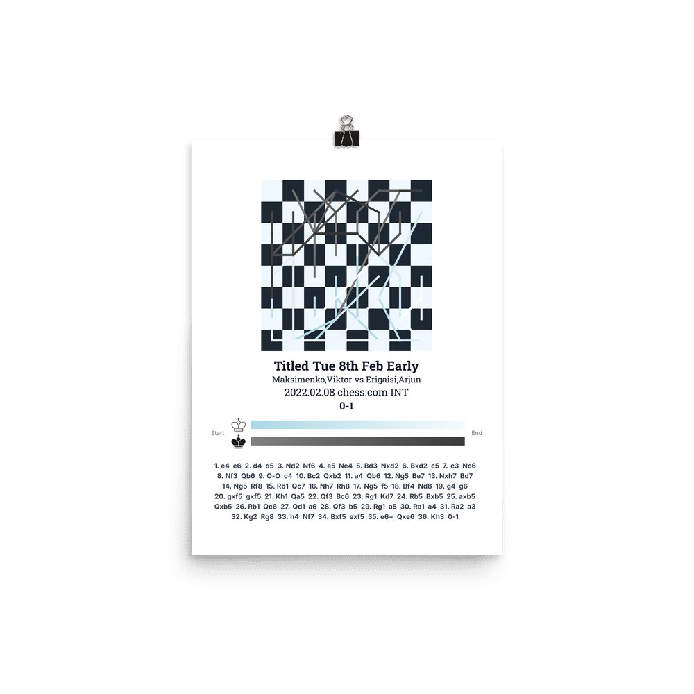 Museum-quality poster on thick, durable matte paper. A sharp, clean look for any chess visualisation.
