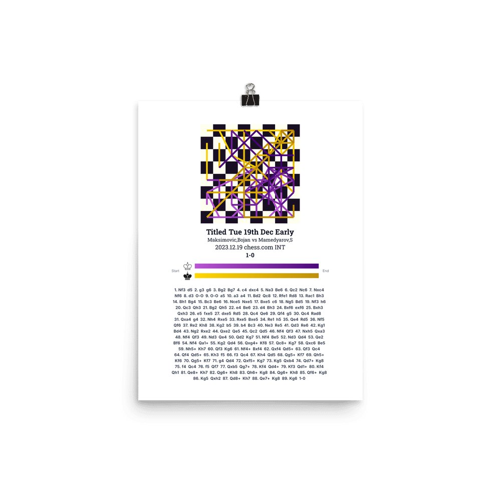 Museum-quality poster on thick, durable matte paper. A sharp, clean look for any chess visualisation.