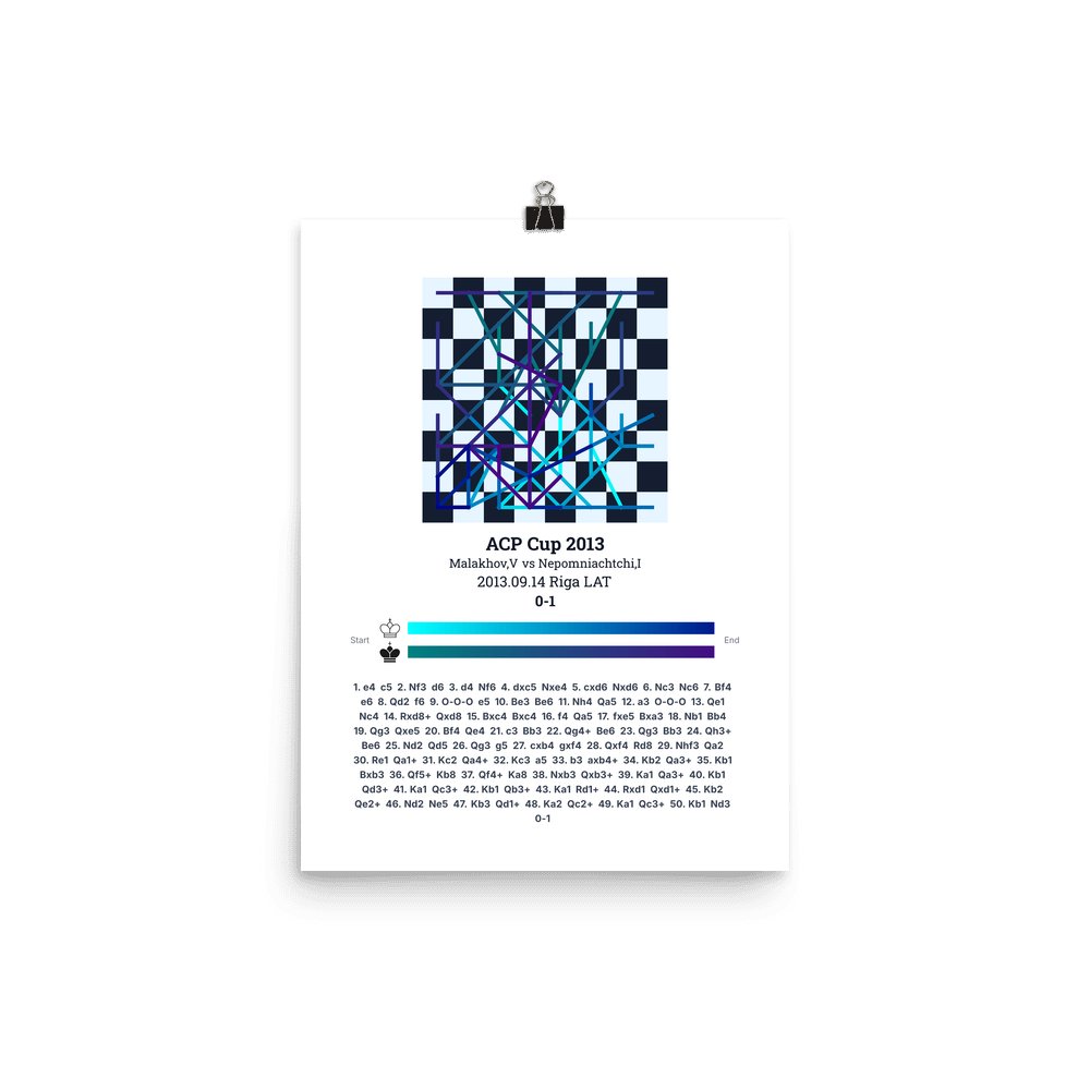 Museum-quality poster on thick, durable matte paper. A sharp, clean look for any chess visualisation.