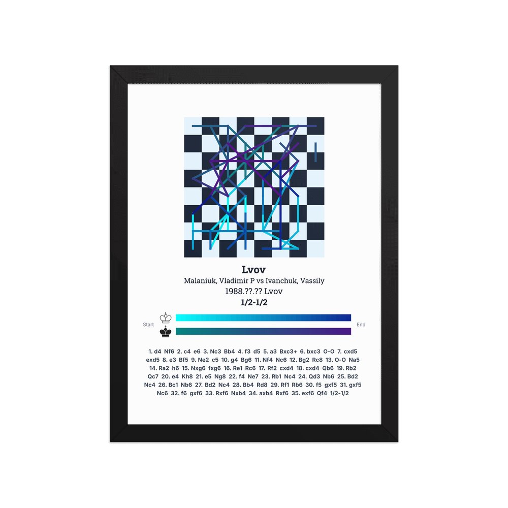 Museum-quality poster on thick, durable matte paper. A sharp, clean look for any chess visualisation.