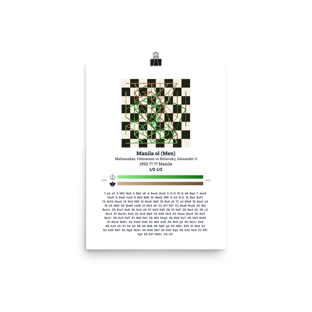 Museum-quality poster on thick, durable matte paper. A sharp, clean look for any chess visualisation.