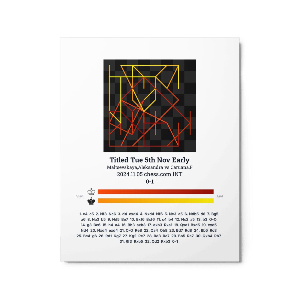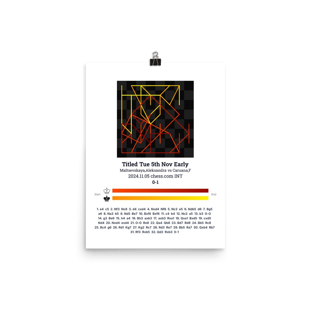Museum-quality poster on thick, durable matte paper. A sharp, clean look for any chess visualisation.