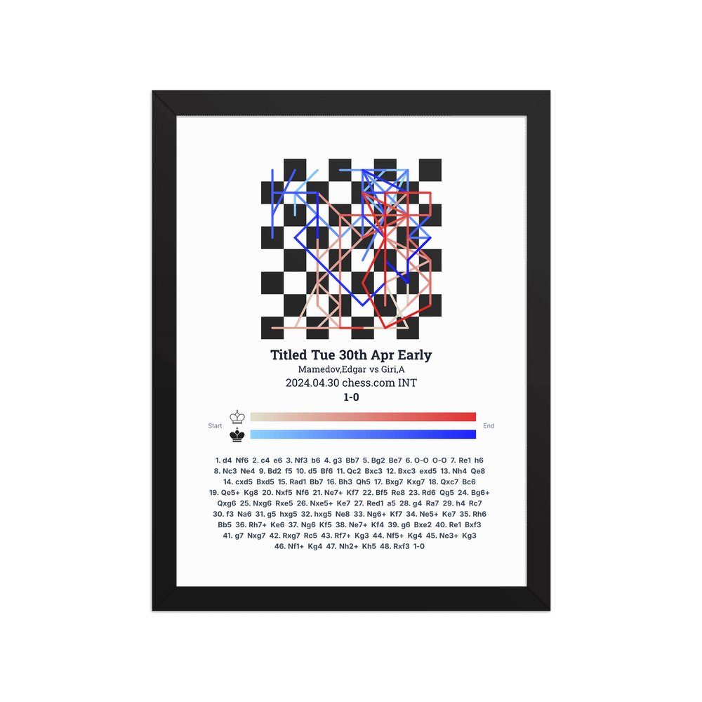 Museum-quality poster on thick, durable matte paper. A sharp, clean look for any chess visualisation.