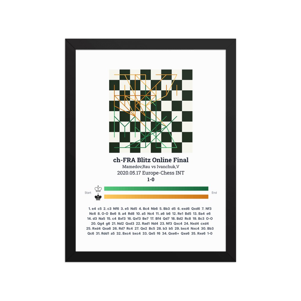 Museum-quality poster on thick, durable matte paper. A sharp, clean look for any chess visualisation.