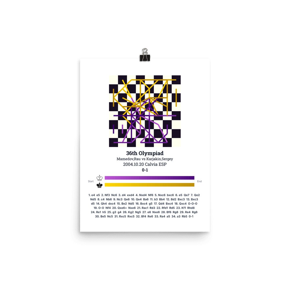 Museum-quality poster on thick, durable matte paper. A sharp, clean look for any chess visualisation.