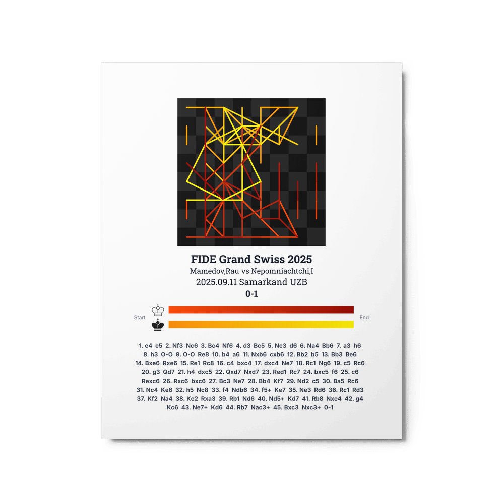 Museum-quality poster on thick, durable matte paper. A sharp, clean look for any chess visualisation.