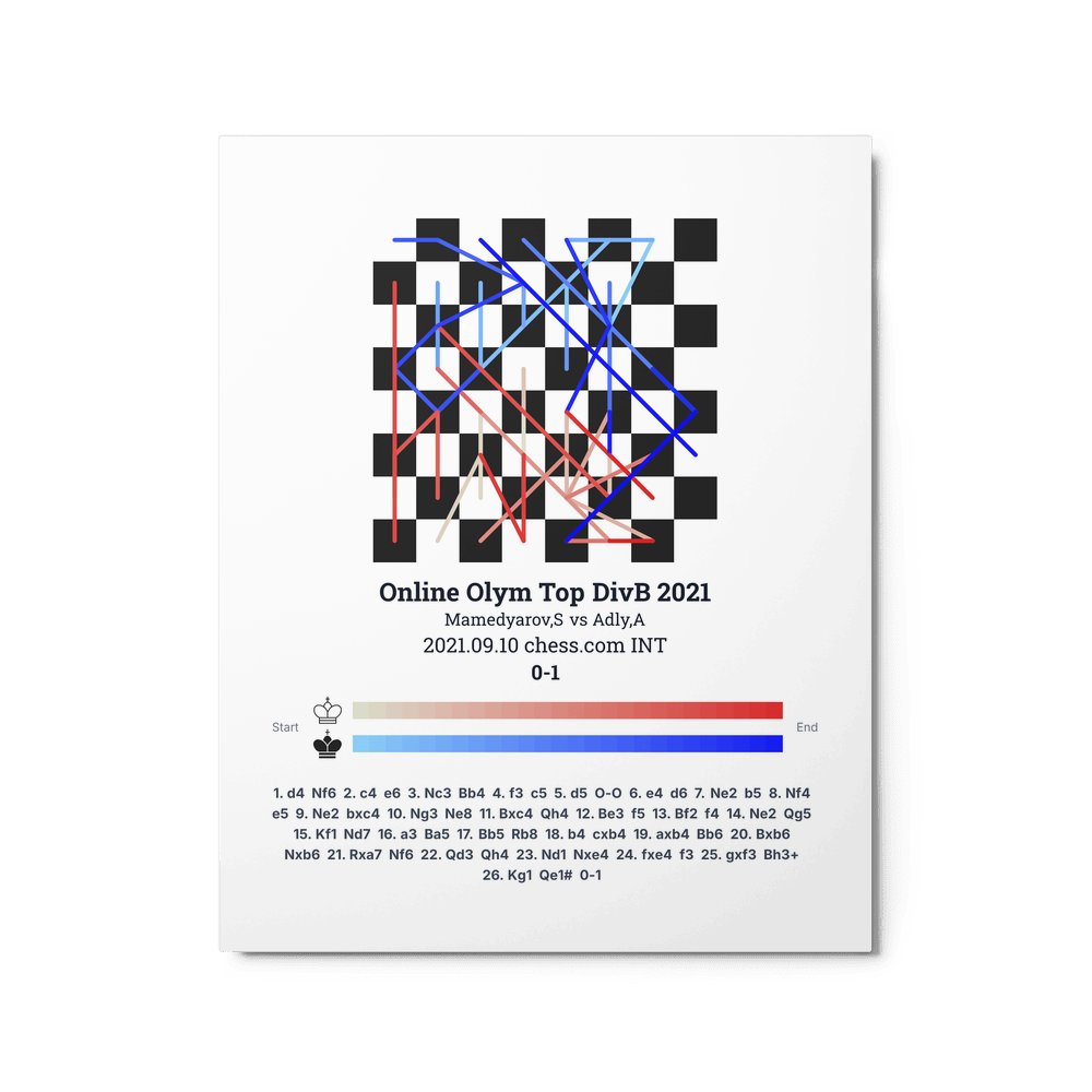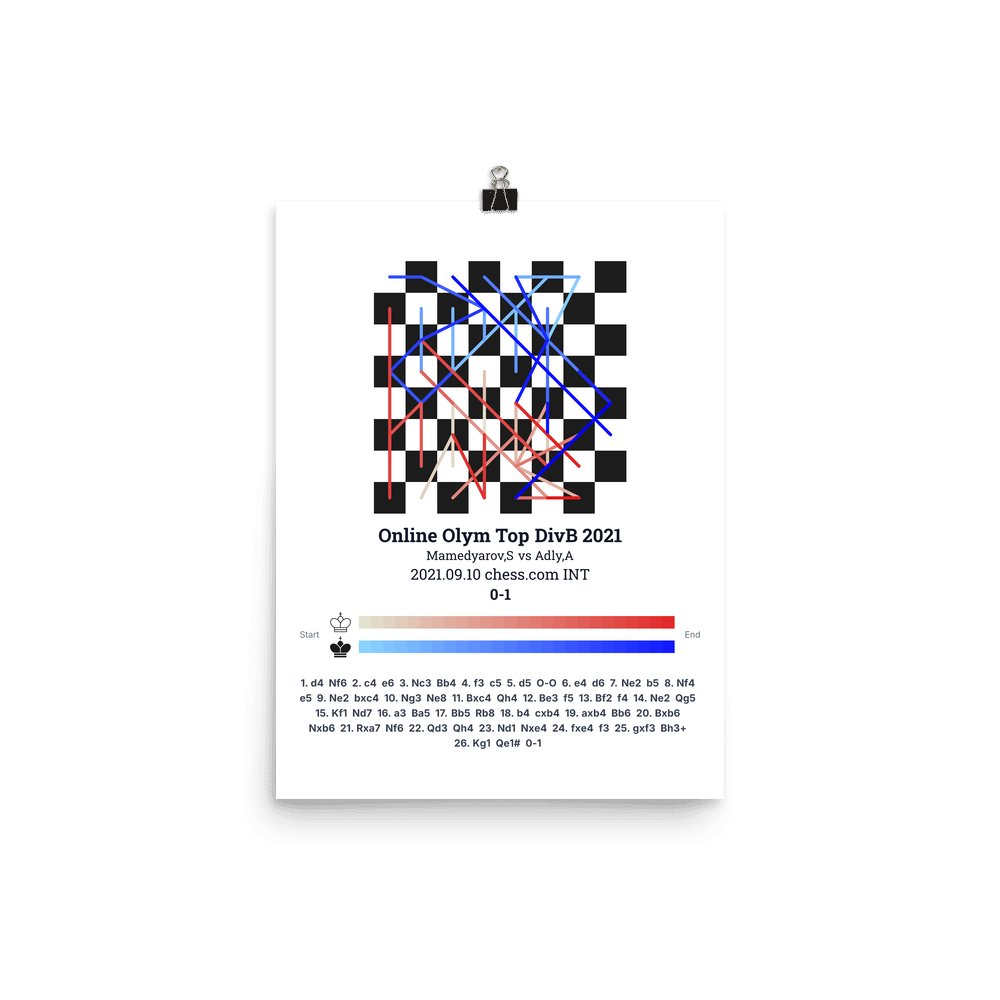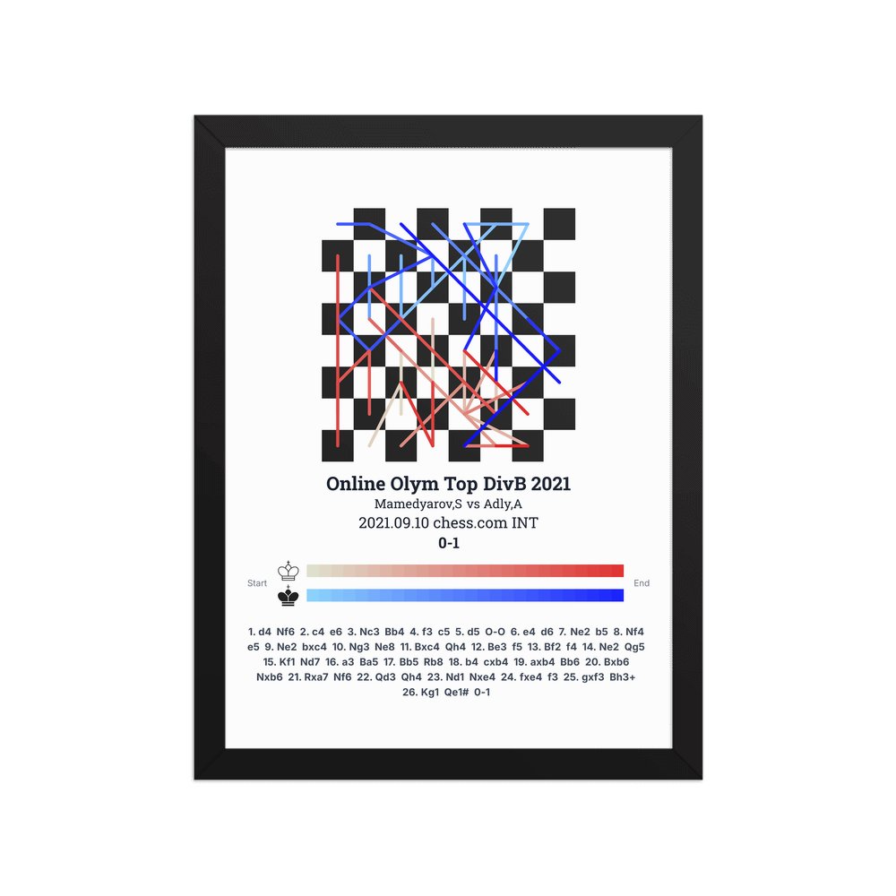 Museum-quality poster on thick, durable matte paper. A sharp, clean look for any chess visualisation.