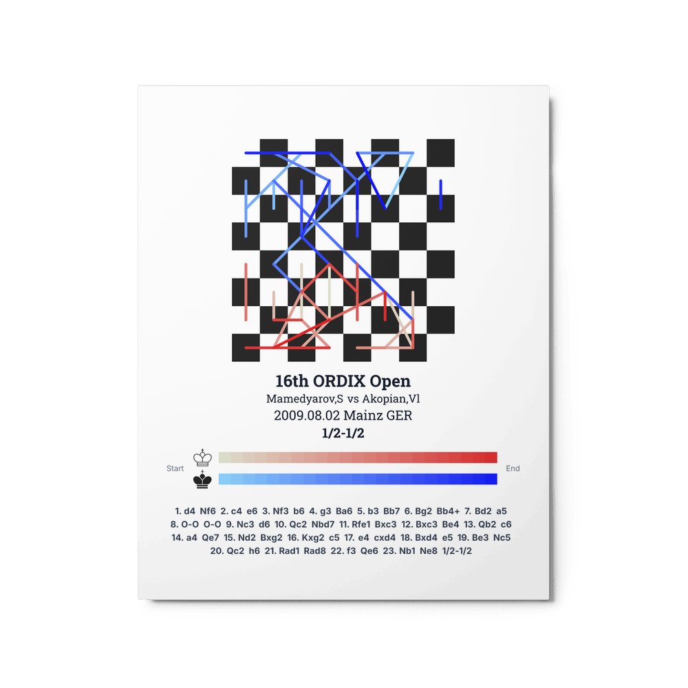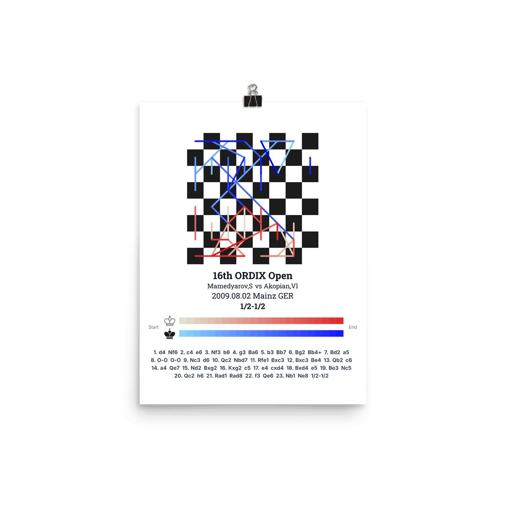 Museum-quality poster on thick, durable matte paper. A sharp, clean look for any chess visualisation.