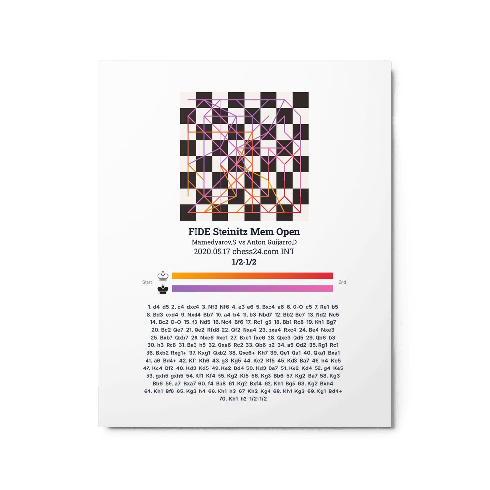 Museum-quality poster on thick, durable matte paper. A sharp, clean look for any chess visualisation.