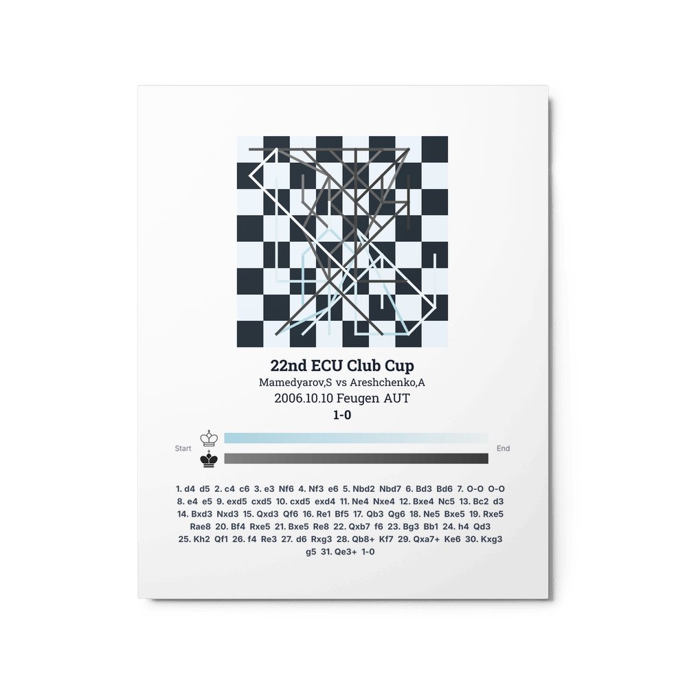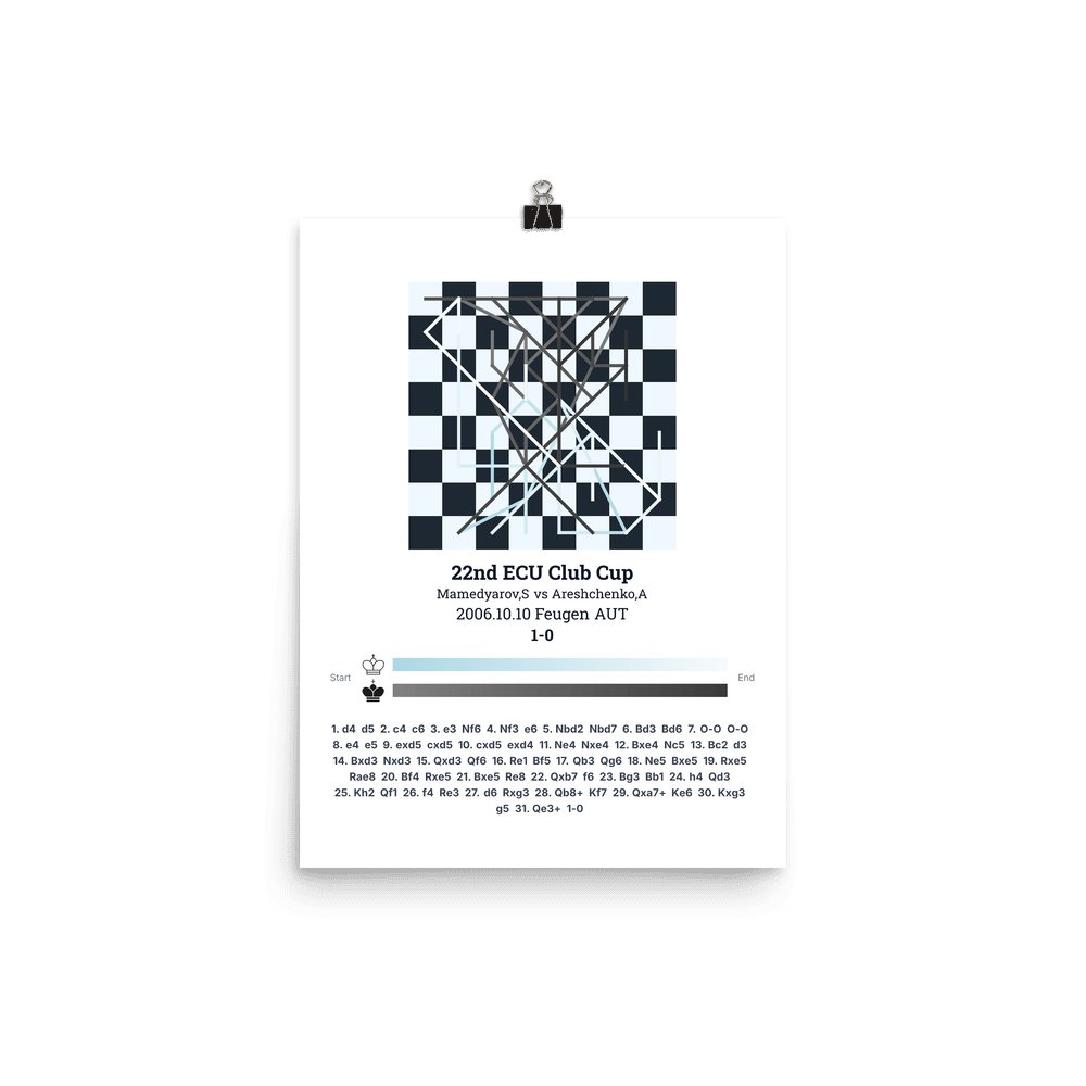 Museum-quality poster on thick, durable matte paper. A sharp, clean look for any chess visualisation.