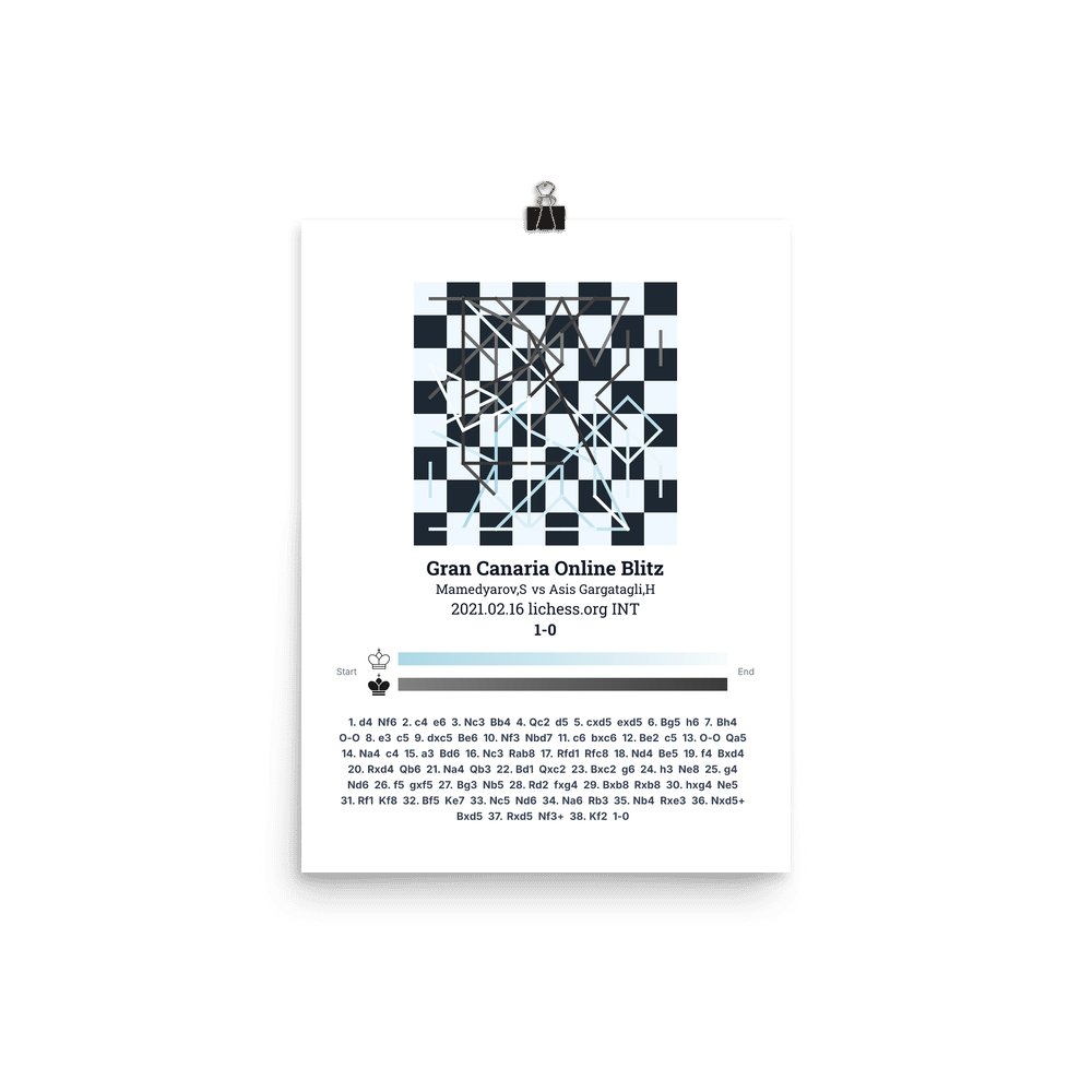Museum-quality poster on thick, durable matte paper. A sharp, clean look for any chess visualisation.