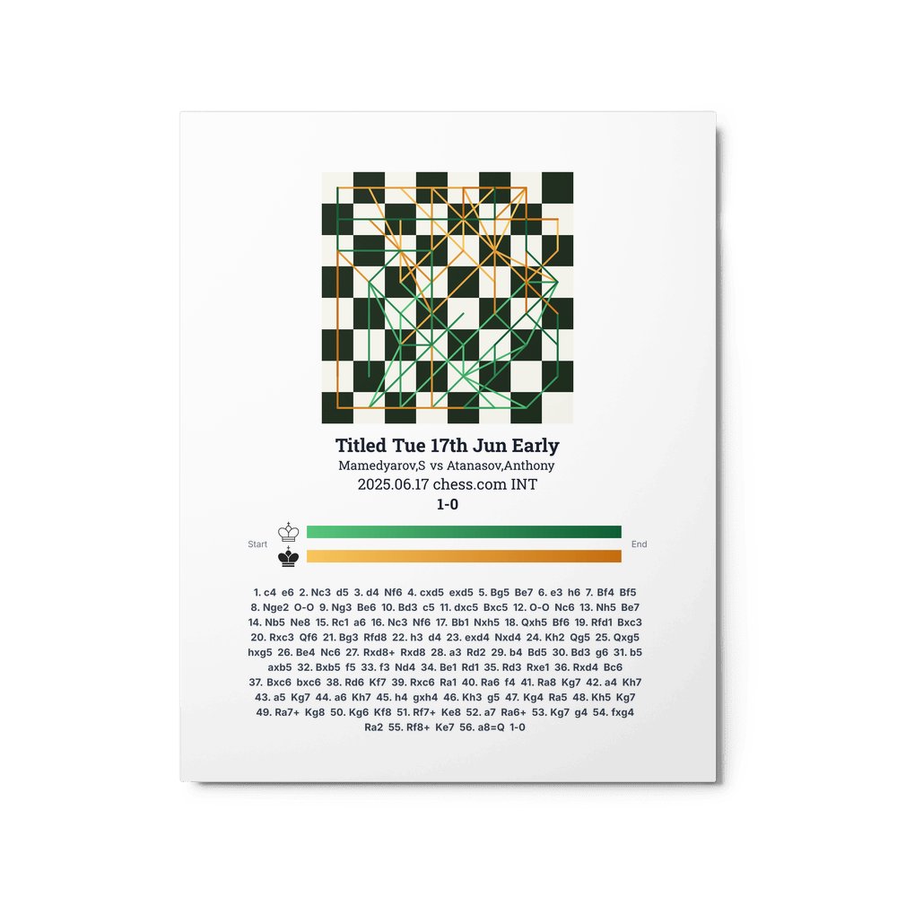 Museum-quality poster on thick, durable matte paper. A sharp, clean look for any chess visualisation.