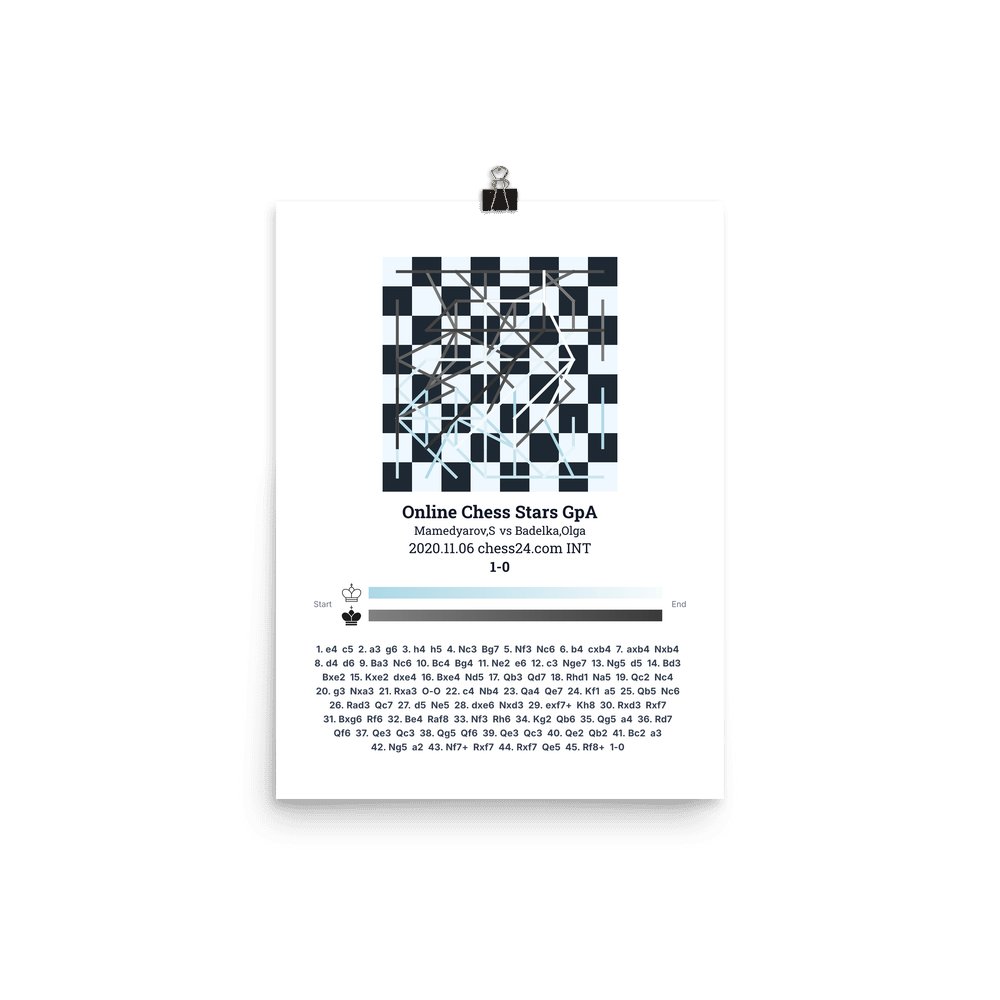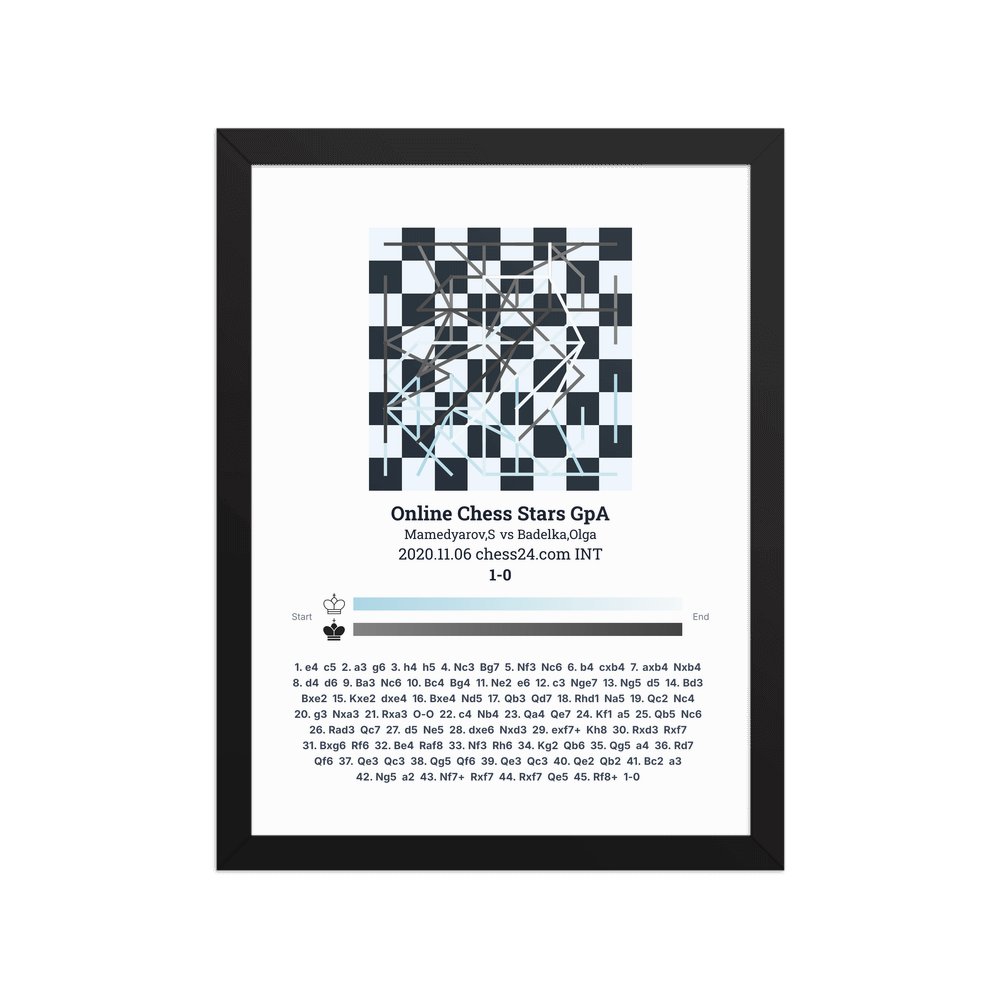 Museum-quality poster on thick, durable matte paper. A sharp, clean look for any chess visualisation.