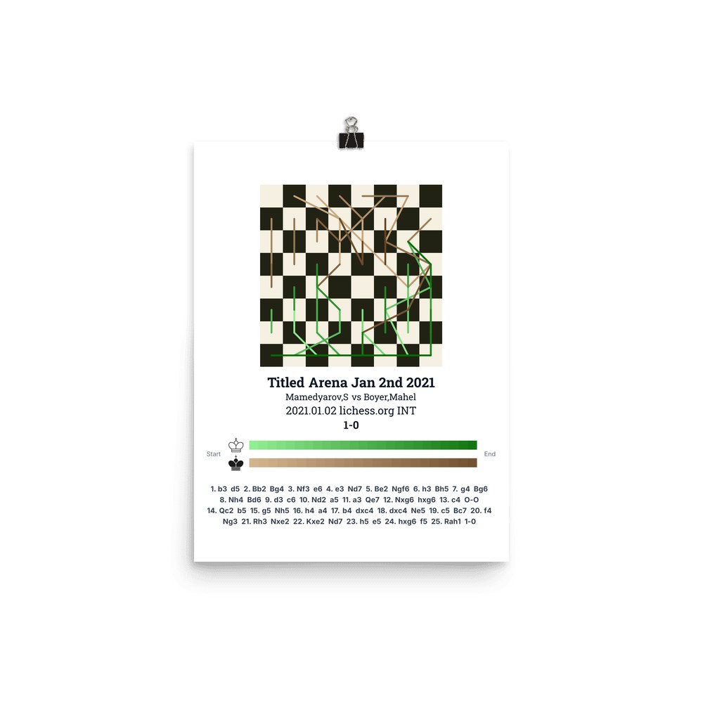 Museum-quality poster on thick, durable matte paper. A sharp, clean look for any chess visualisation.