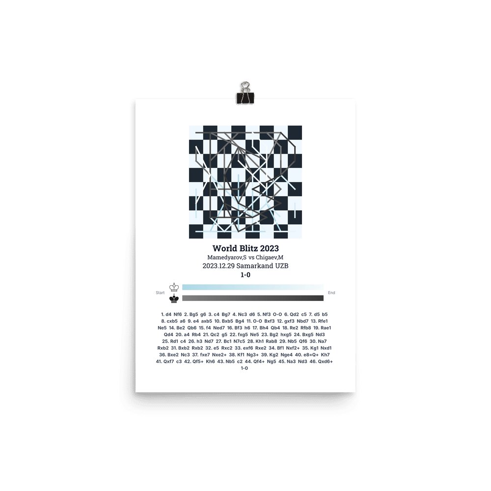 Museum-quality poster on thick, durable matte paper. A sharp, clean look for any chess visualisation.