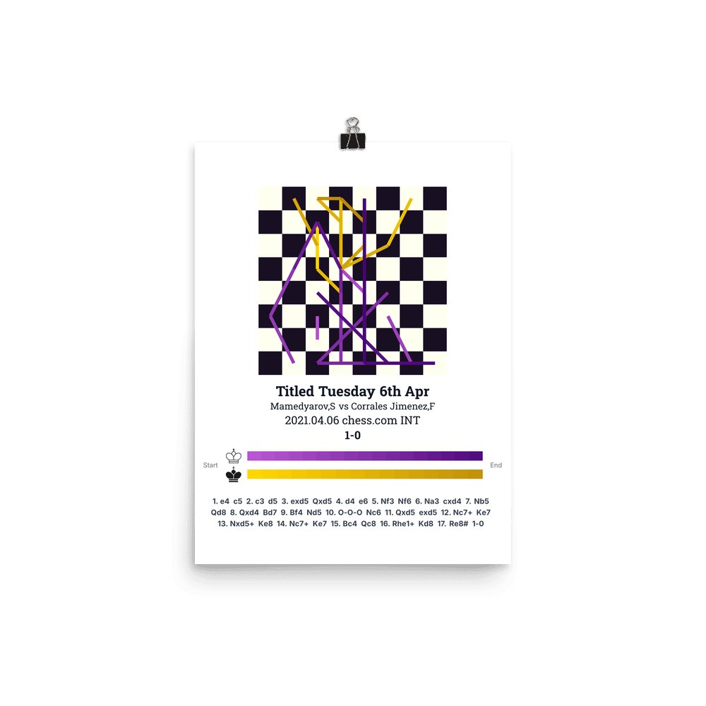 Museum-quality poster on thick, durable matte paper. A sharp, clean look for any chess visualisation.