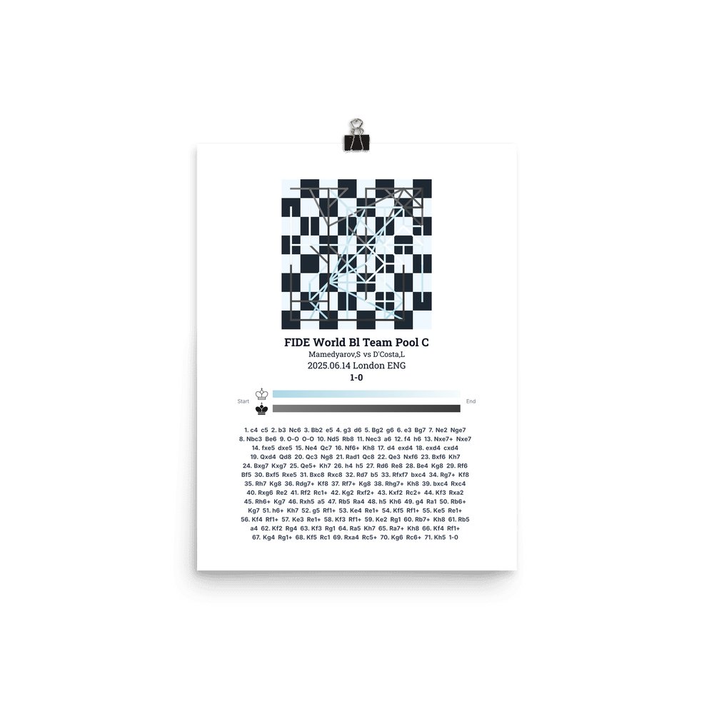 Museum-quality poster on thick, durable matte paper. A sharp, clean look for any chess visualisation.