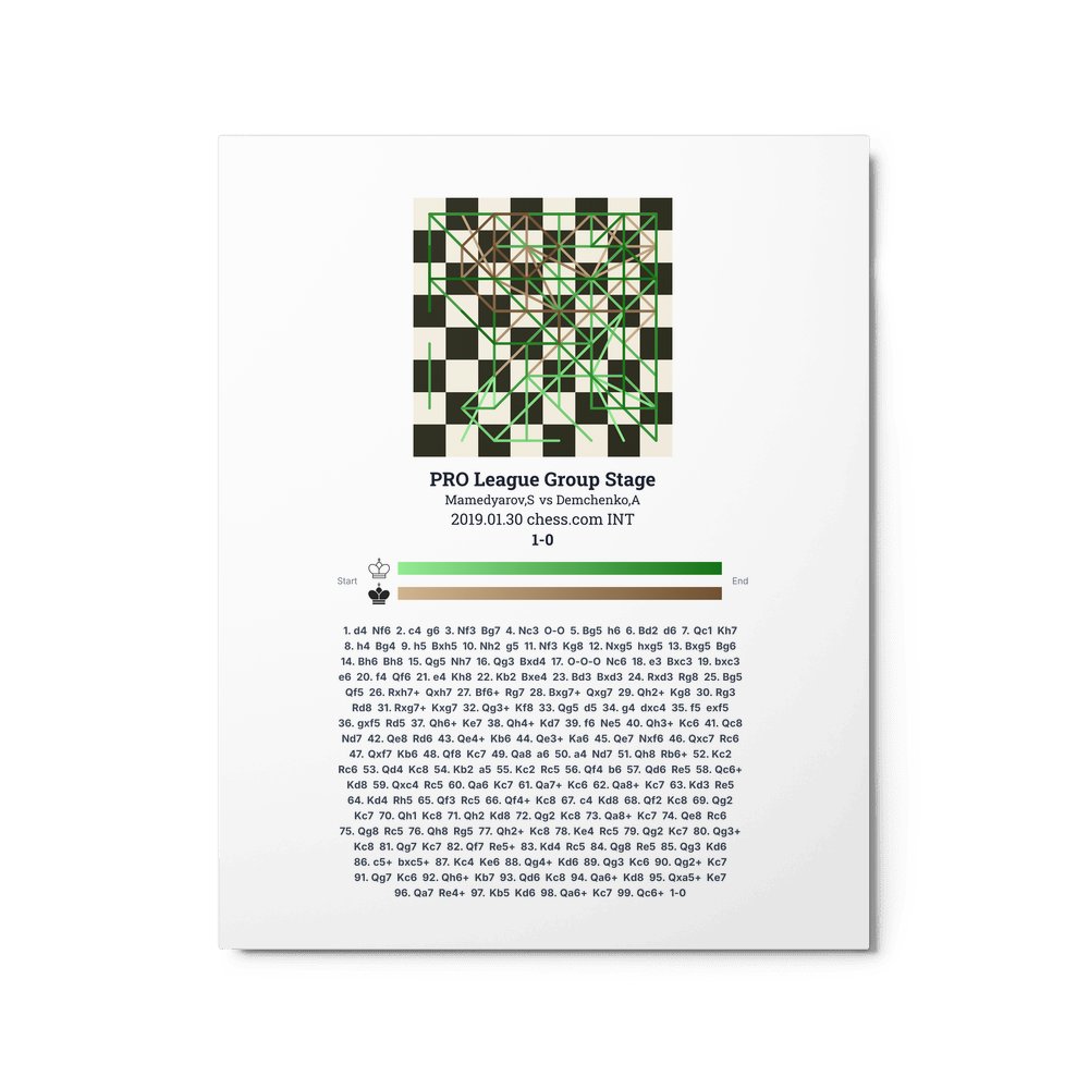 Museum-quality poster on thick, durable matte paper. A sharp, clean look for any chess visualisation.
