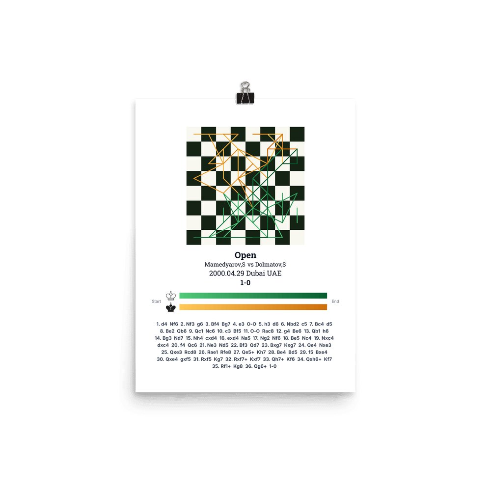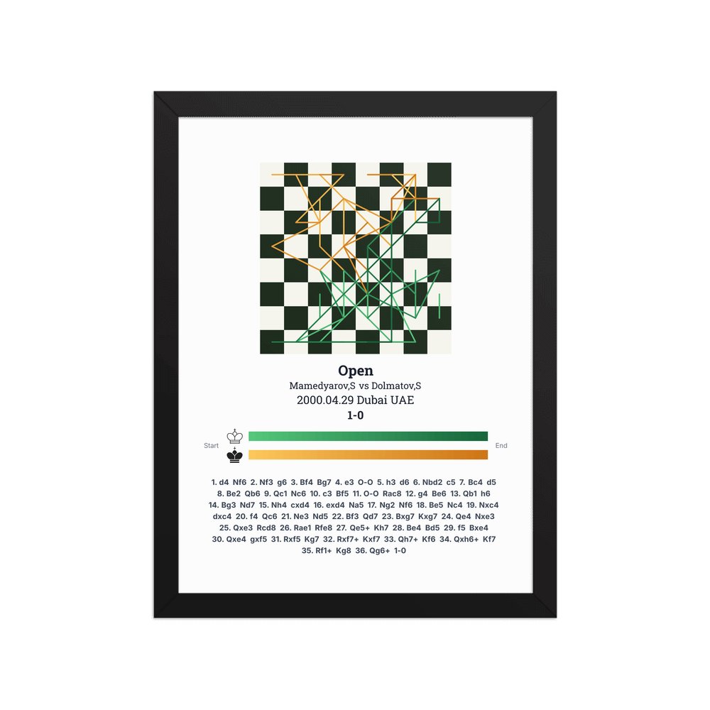 Museum-quality poster on thick, durable matte paper. A sharp, clean look for any chess visualisation.