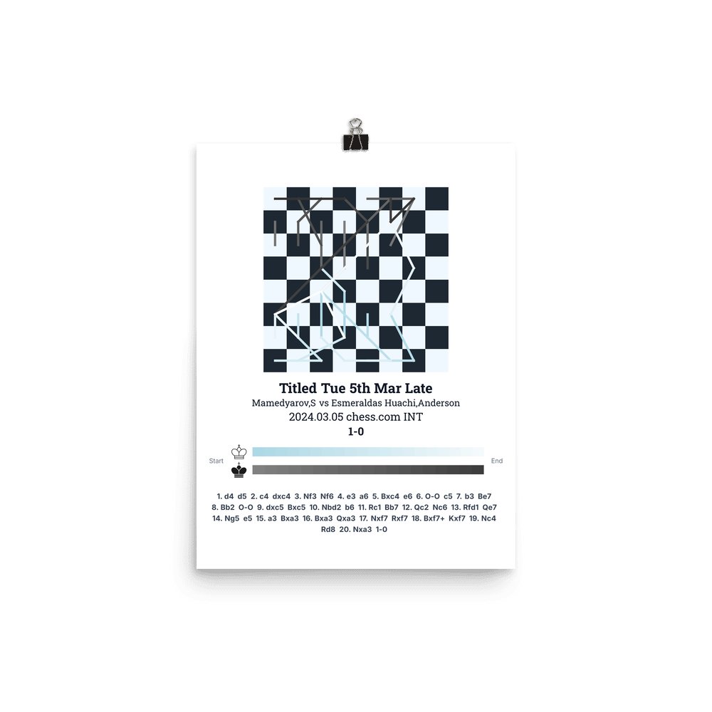Museum-quality poster on thick, durable matte paper. A sharp, clean look for any chess visualisation.