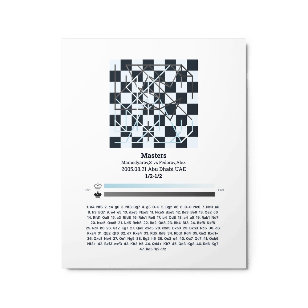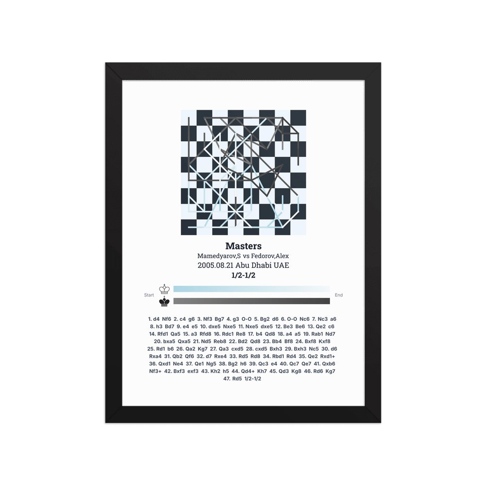 Museum-quality poster on thick, durable matte paper. A sharp, clean look for any chess visualisation.