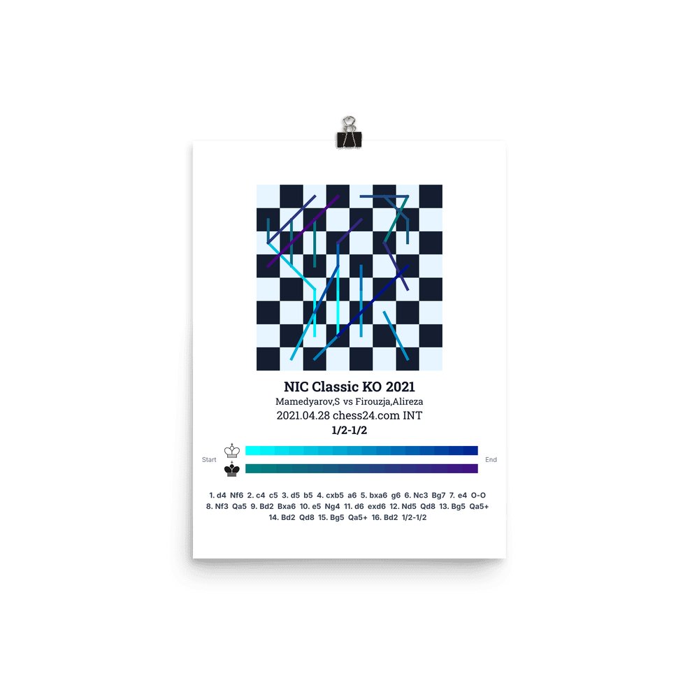 Museum-quality poster on thick, durable matte paper. A sharp, clean look for any chess visualisation.