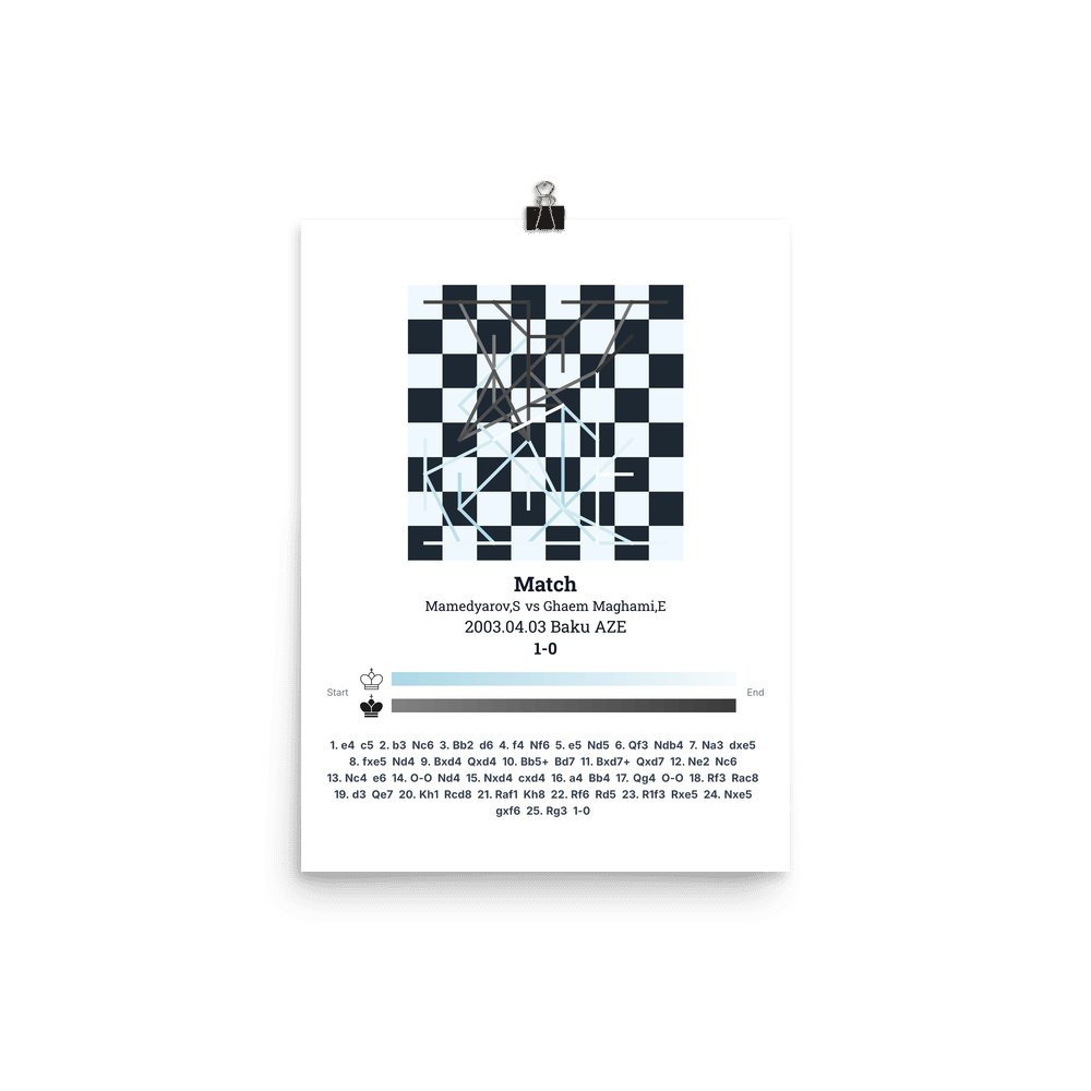 Museum-quality poster on thick, durable matte paper. A sharp, clean look for any chess visualisation.