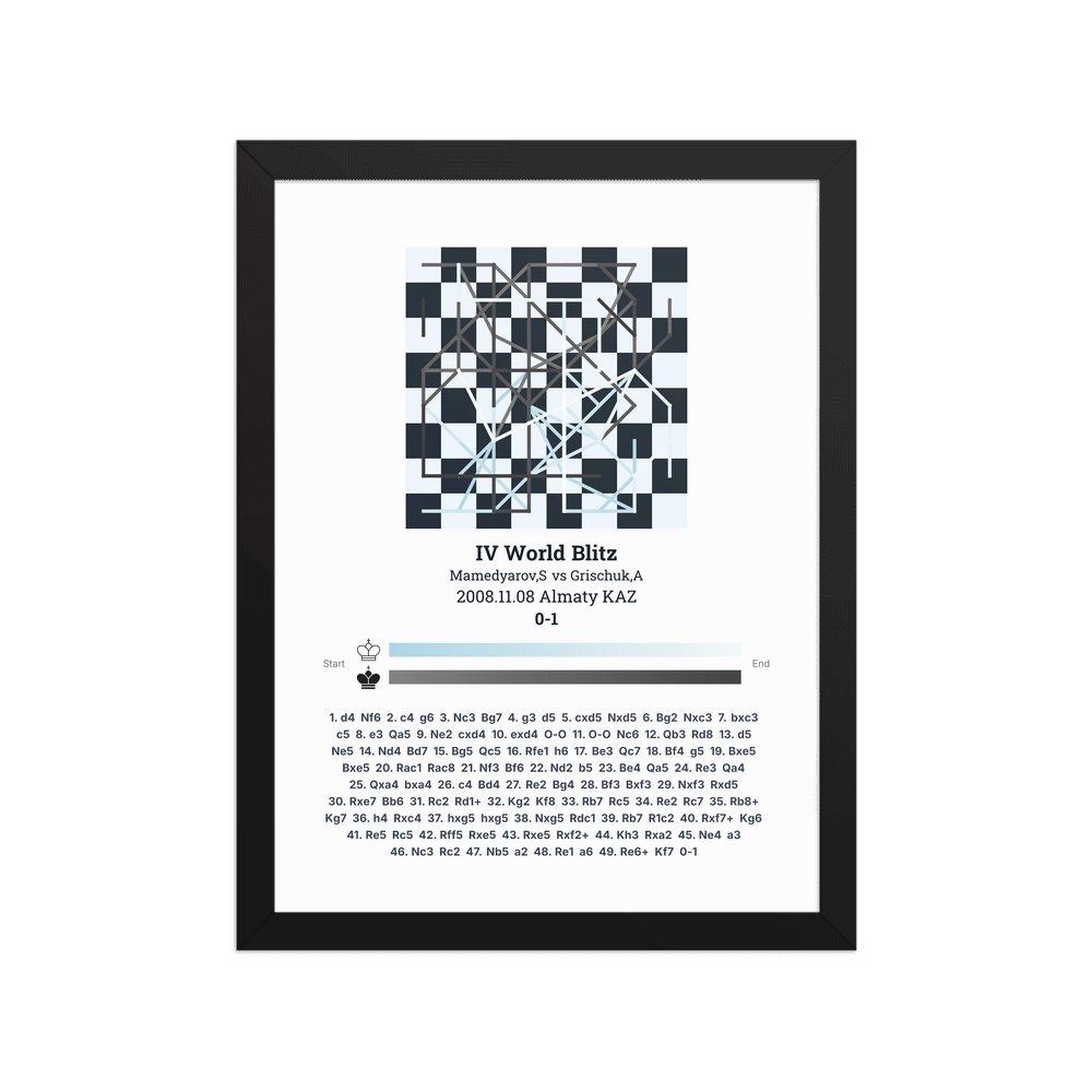 Museum-quality poster on thick, durable matte paper. A sharp, clean look for any chess visualisation.