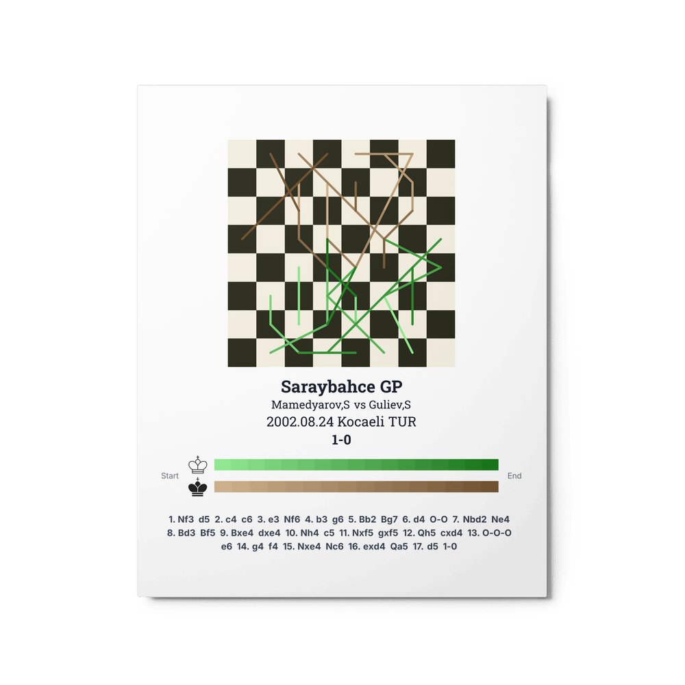 Museum-quality poster on thick, durable matte paper. A sharp, clean look for any chess visualisation.
