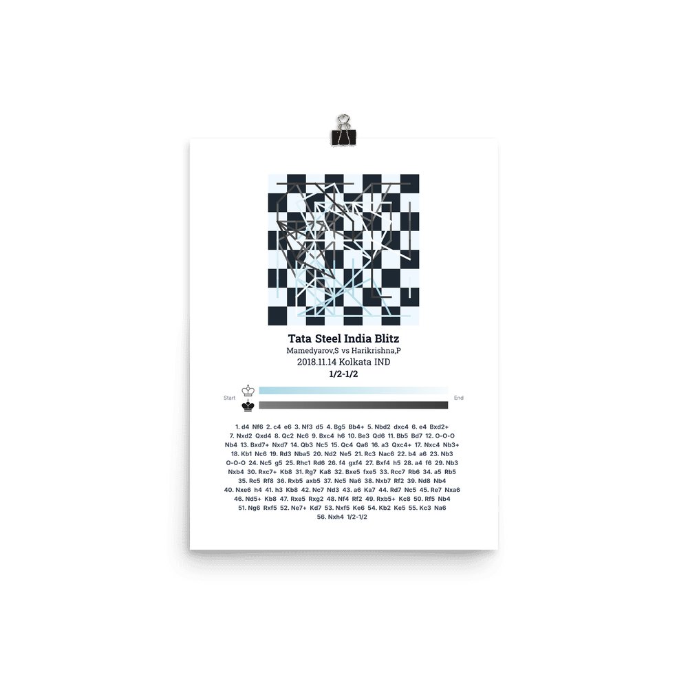Museum-quality poster on thick, durable matte paper. A sharp, clean look for any chess visualisation.