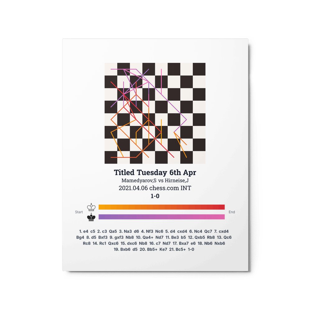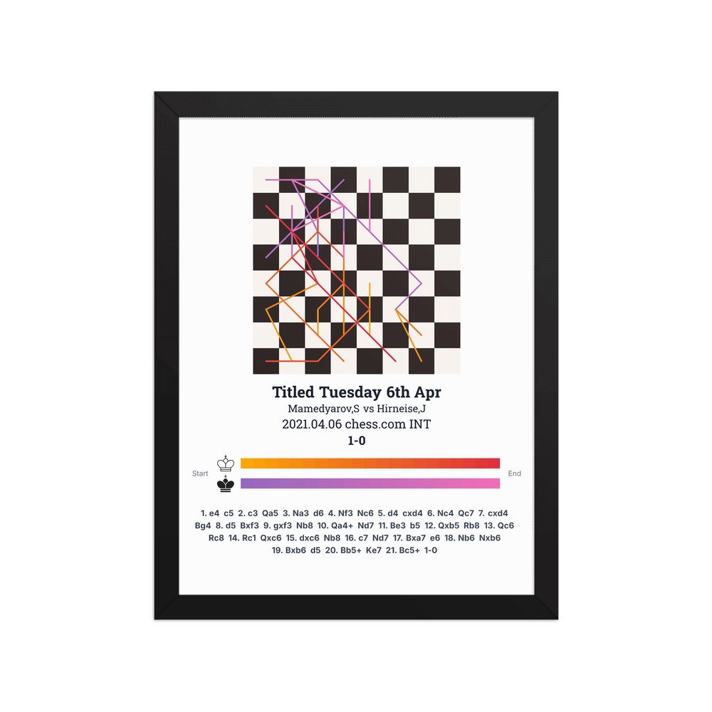 Museum-quality poster on thick, durable matte paper. A sharp, clean look for any chess visualisation.