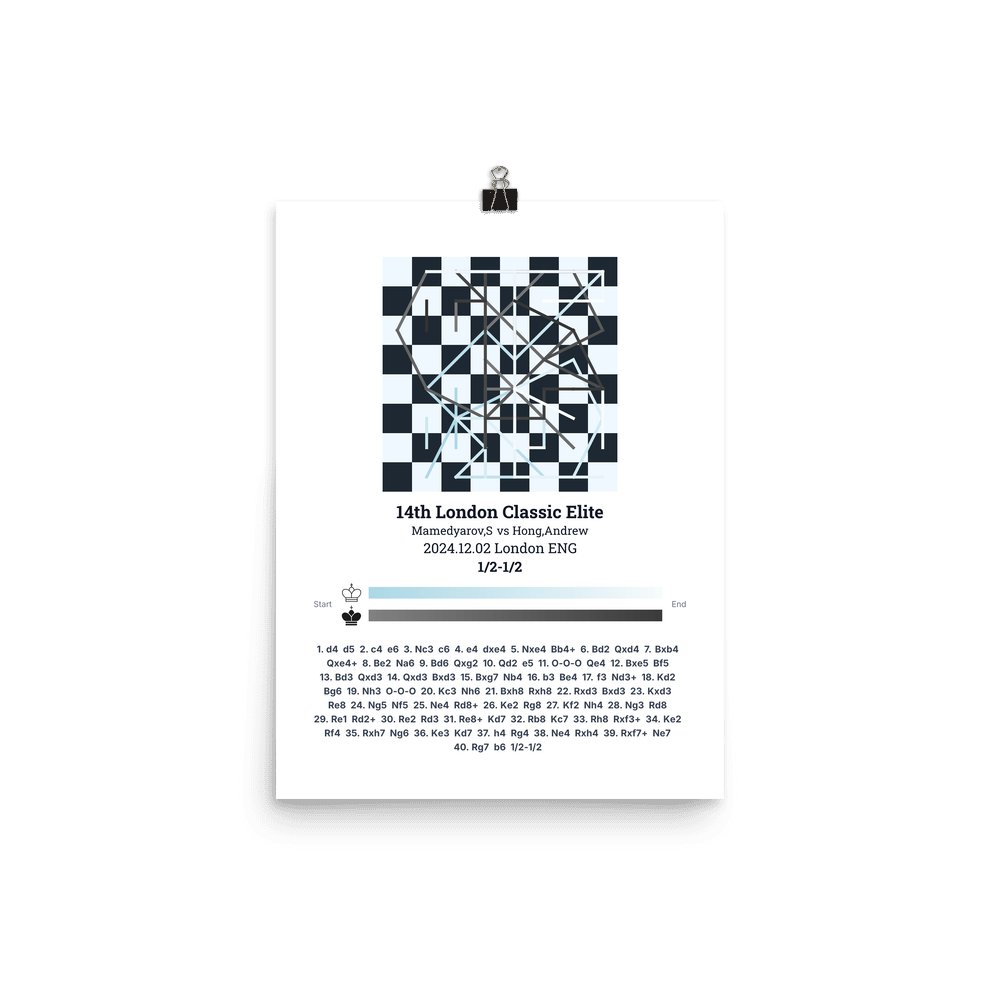 Museum-quality poster on thick, durable matte paper. A sharp, clean look for any chess visualisation.