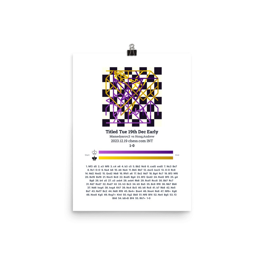 Museum-quality poster on thick, durable matte paper. A sharp, clean look for any chess visualisation.