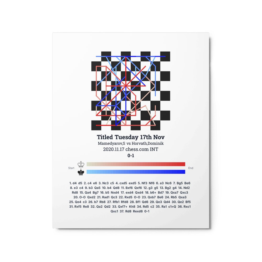 Museum-quality poster on thick, durable matte paper. A sharp, clean look for any chess visualisation.