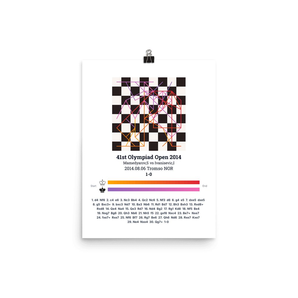 Museum-quality poster on thick, durable matte paper. A sharp, clean look for any chess visualisation.