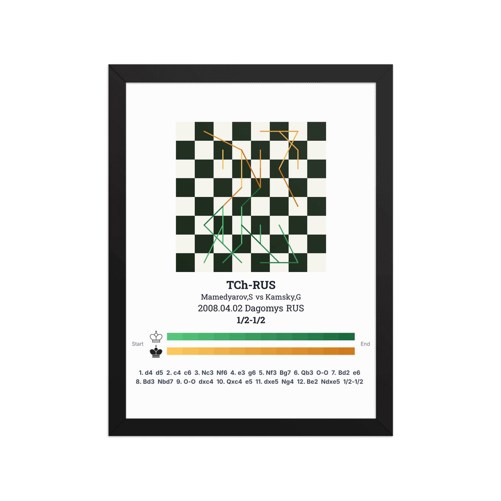 Museum-quality poster on thick, durable matte paper. A sharp, clean look for any chess visualisation.