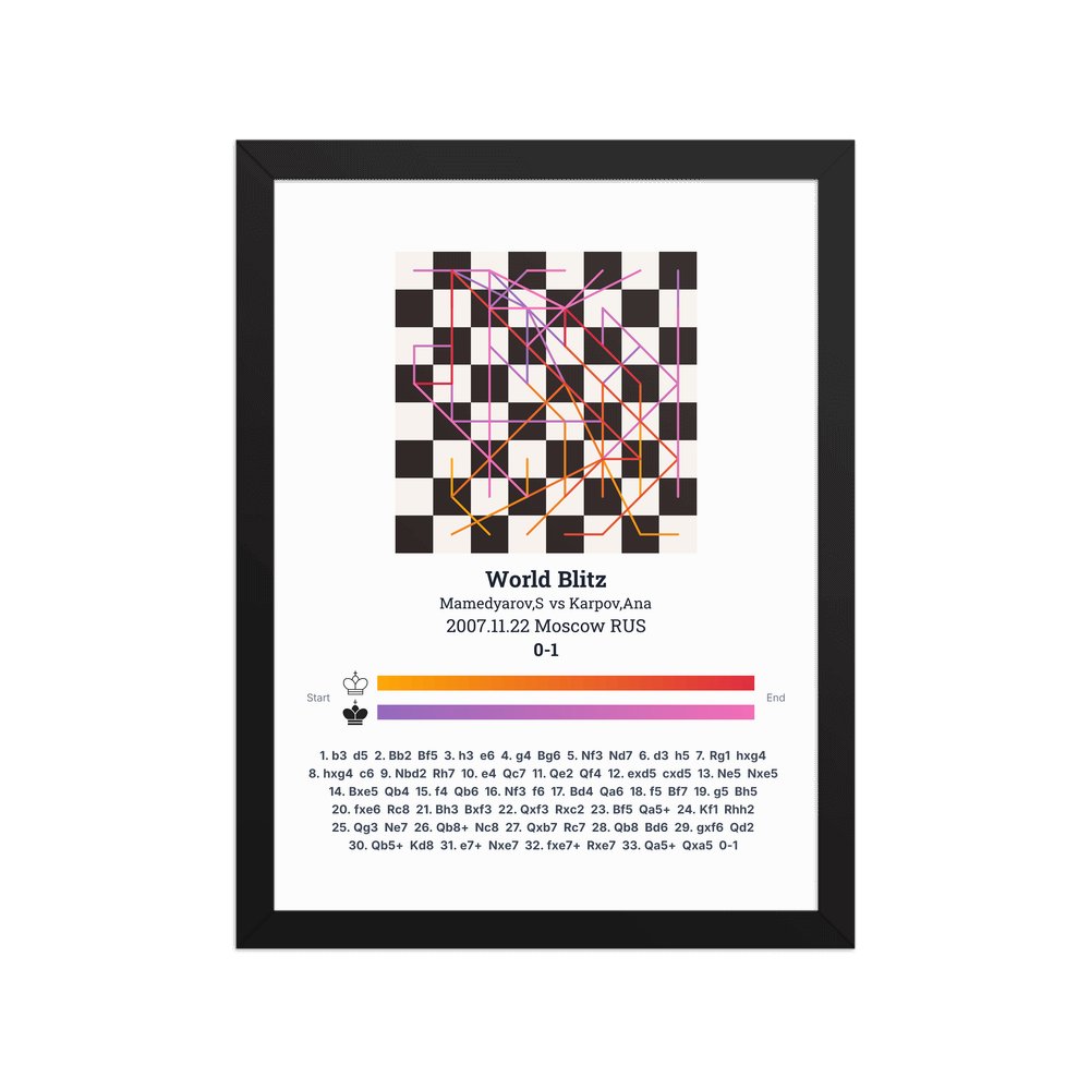 Museum-quality poster on thick, durable matte paper. A sharp, clean look for any chess visualisation.