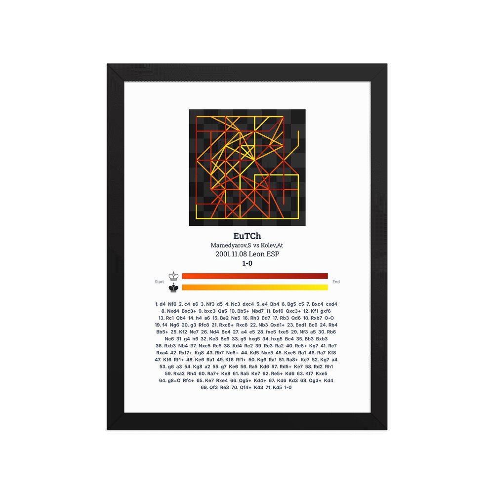 Museum-quality poster on thick, durable matte paper. A sharp, clean look for any chess visualisation.