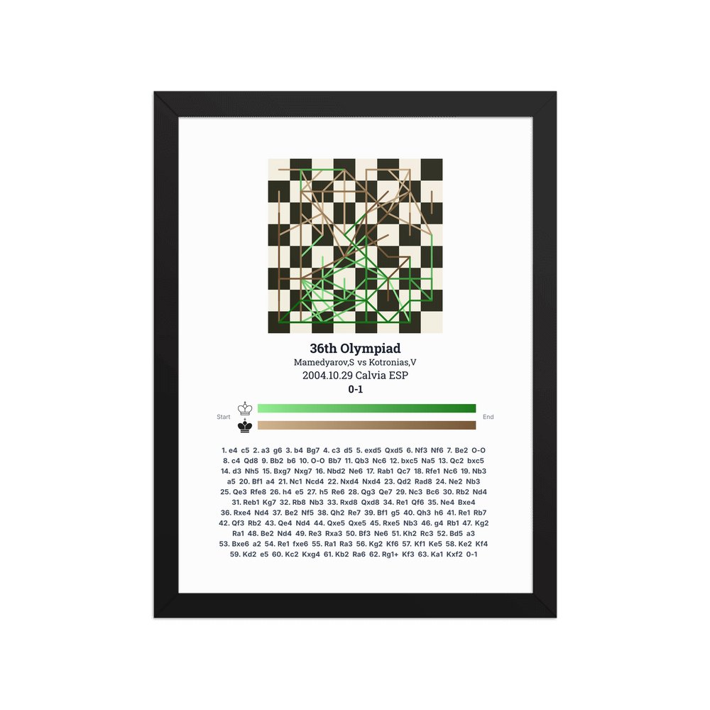 Museum-quality poster on thick, durable matte paper. A sharp, clean look for any chess visualisation.