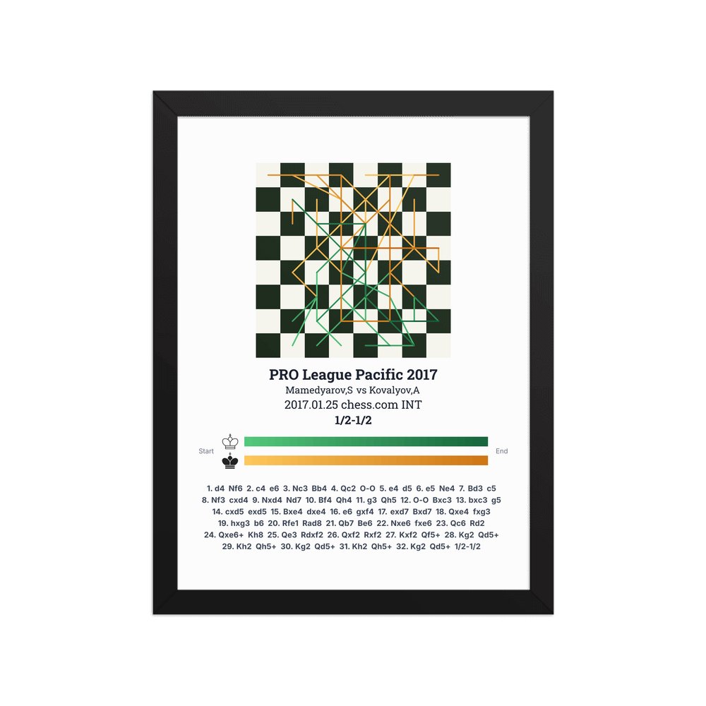 Museum-quality poster on thick, durable matte paper. A sharp, clean look for any chess visualisation.
