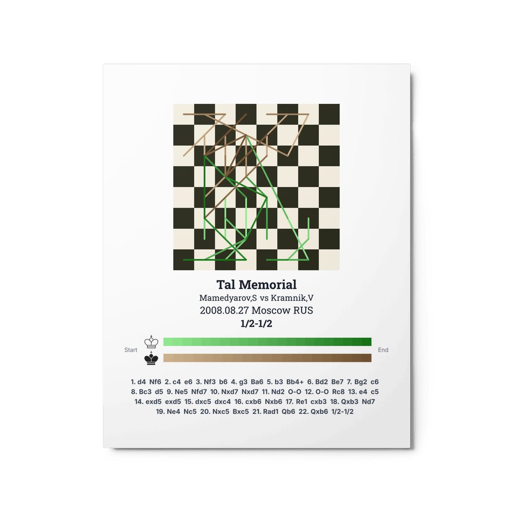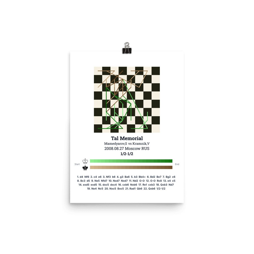 Museum-quality poster on thick, durable matte paper. A sharp, clean look for any chess visualisation.