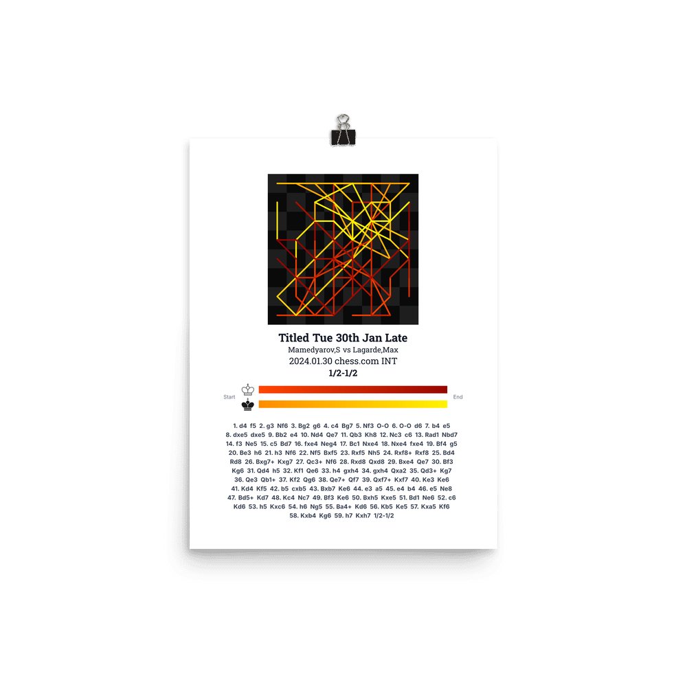 Museum-quality poster on thick, durable matte paper. A sharp, clean look for any chess visualisation.