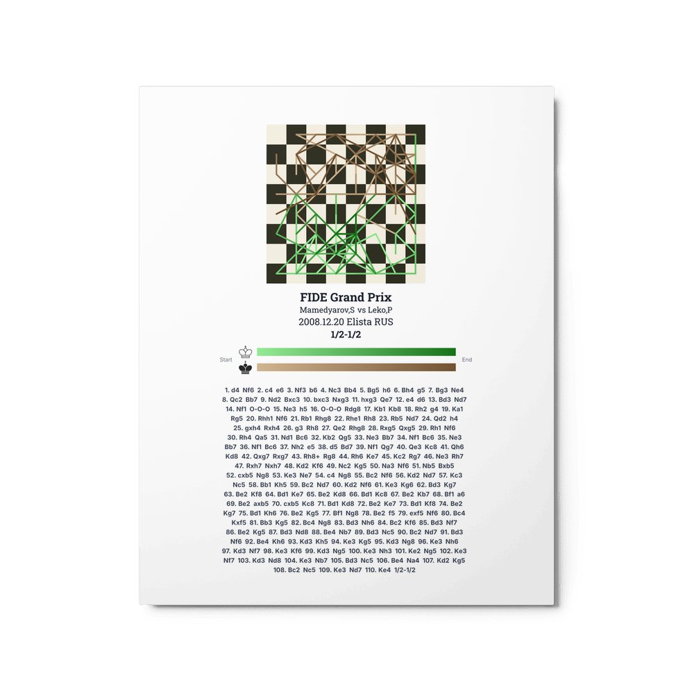 Museum-quality poster on thick, durable matte paper. A sharp, clean look for any chess visualisation.