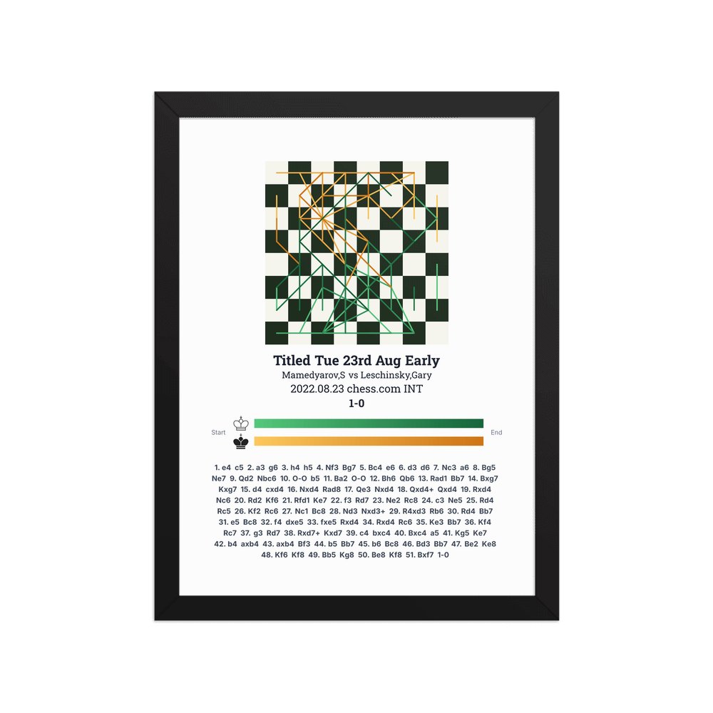 Museum-quality poster on thick, durable matte paper. A sharp, clean look for any chess visualisation.