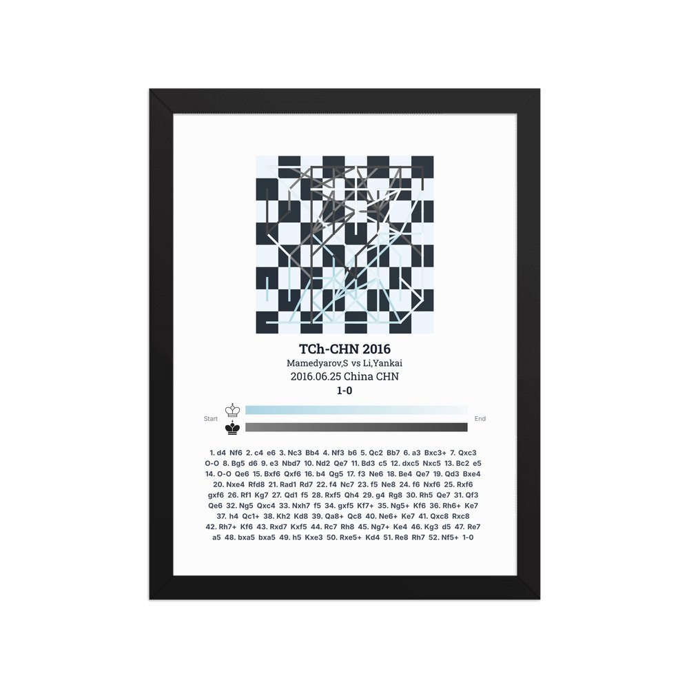 Museum-quality poster on thick, durable matte paper. A sharp, clean look for any chess visualisation.