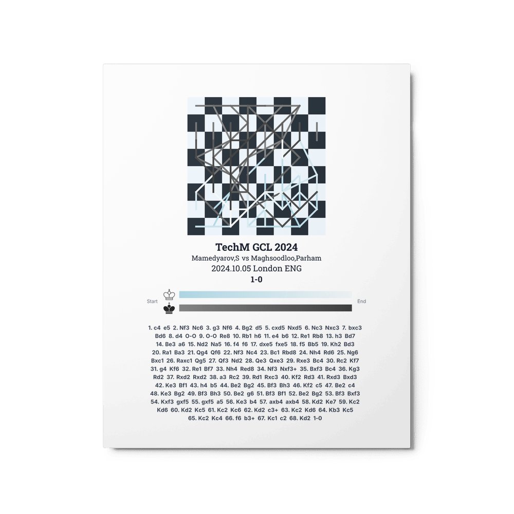 Museum-quality poster on thick, durable matte paper. A sharp, clean look for any chess visualisation.