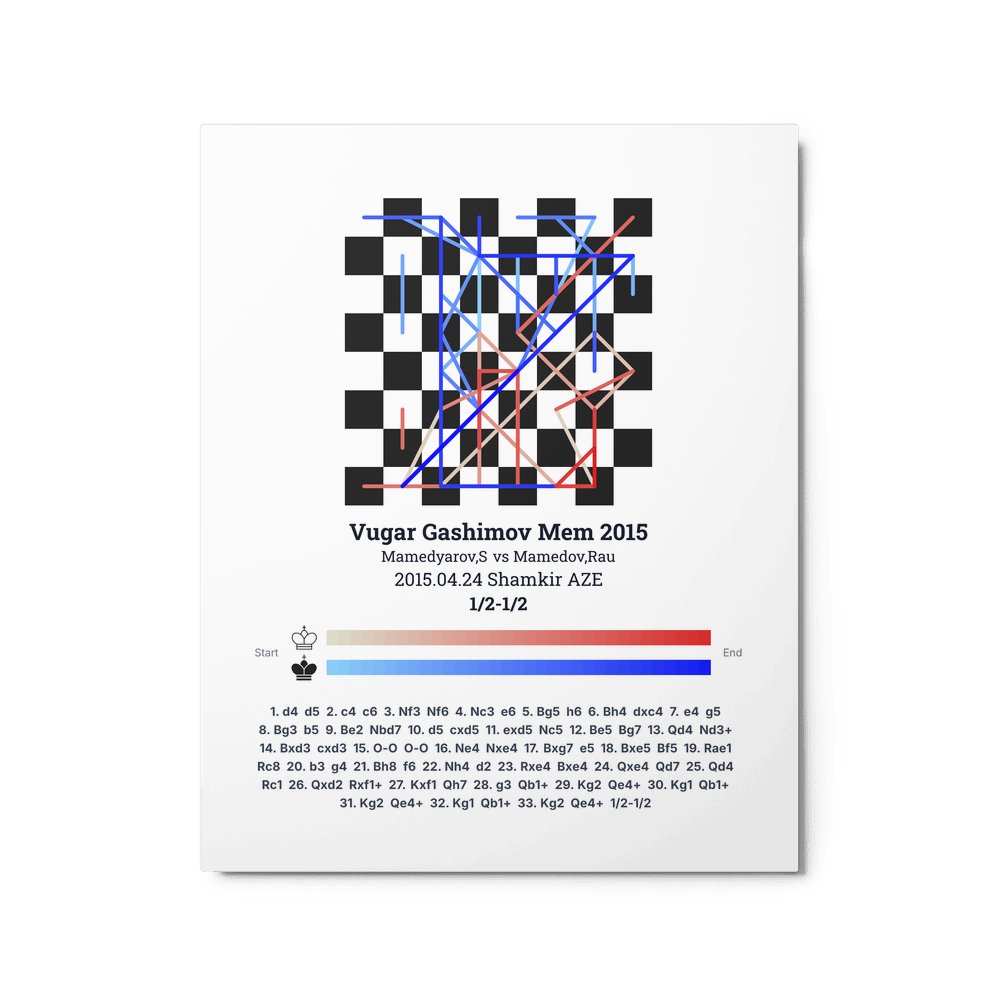 Museum-quality poster on thick, durable matte paper. A sharp, clean look for any chess visualisation.