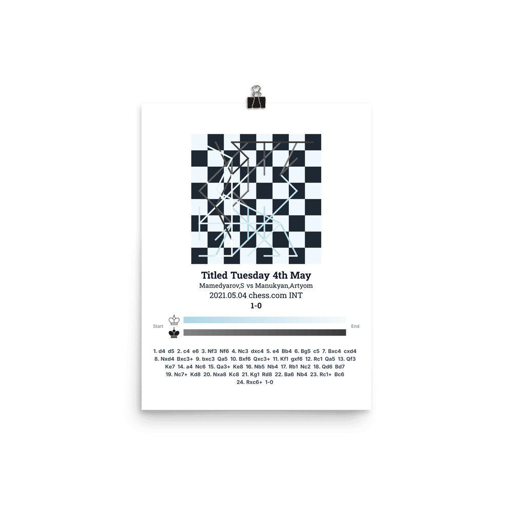 Museum-quality poster on thick, durable matte paper. A sharp, clean look for any chess visualisation.