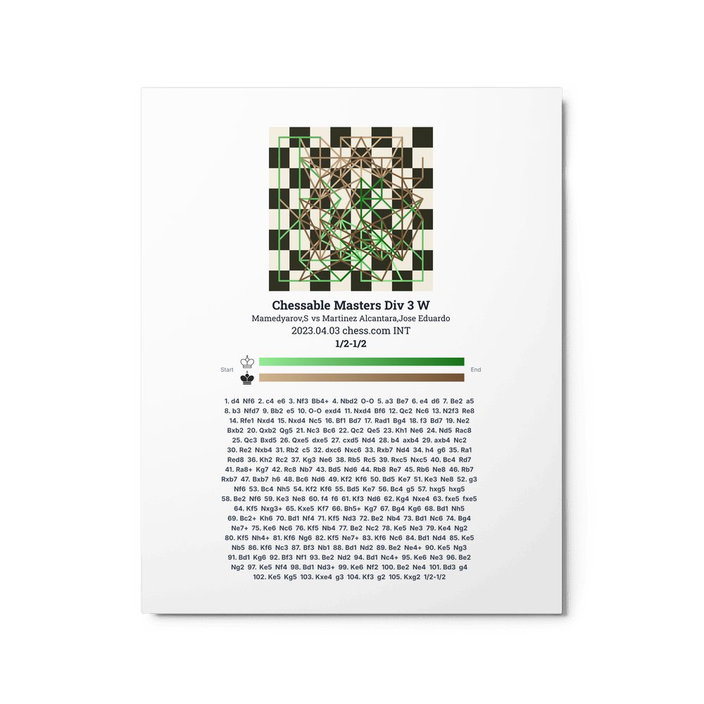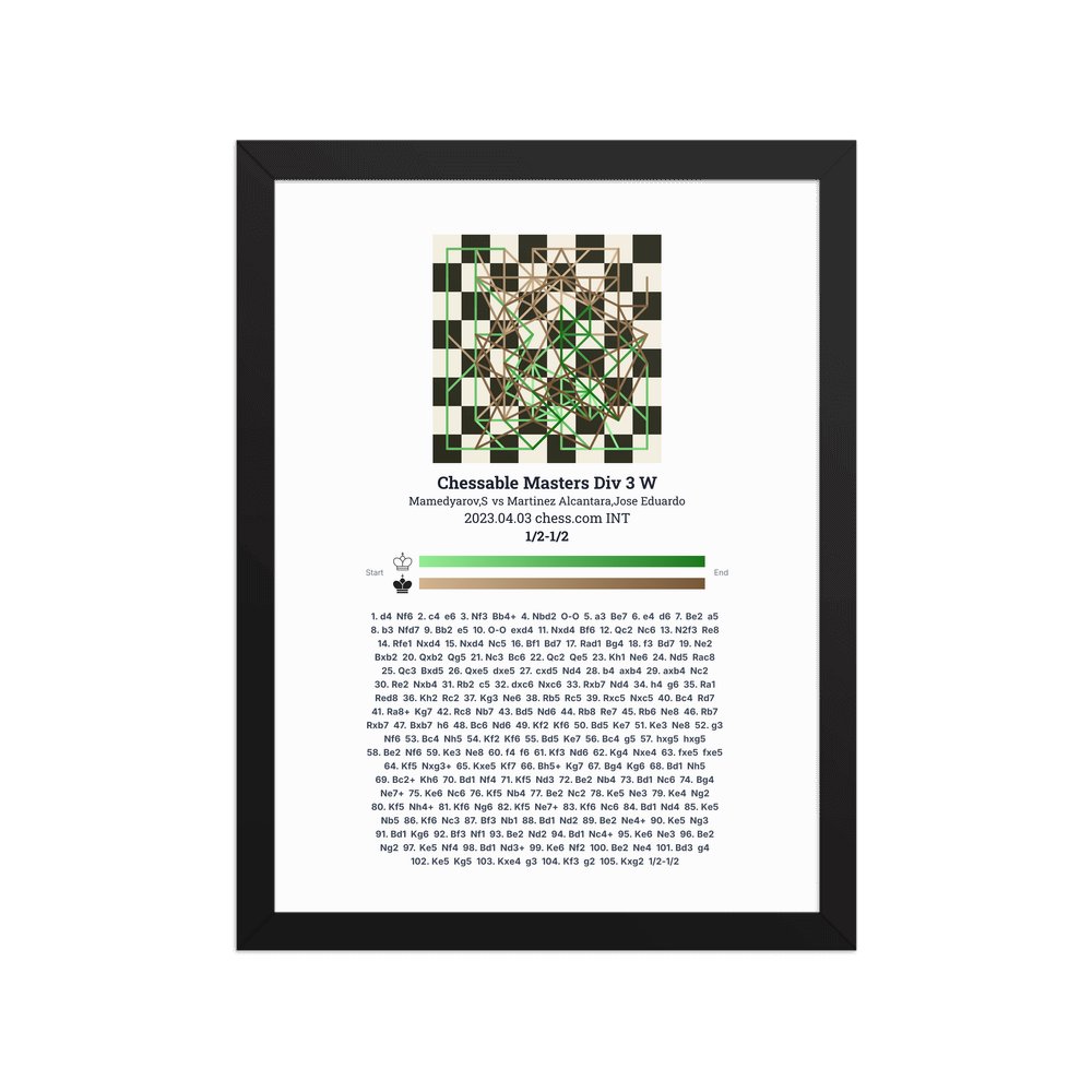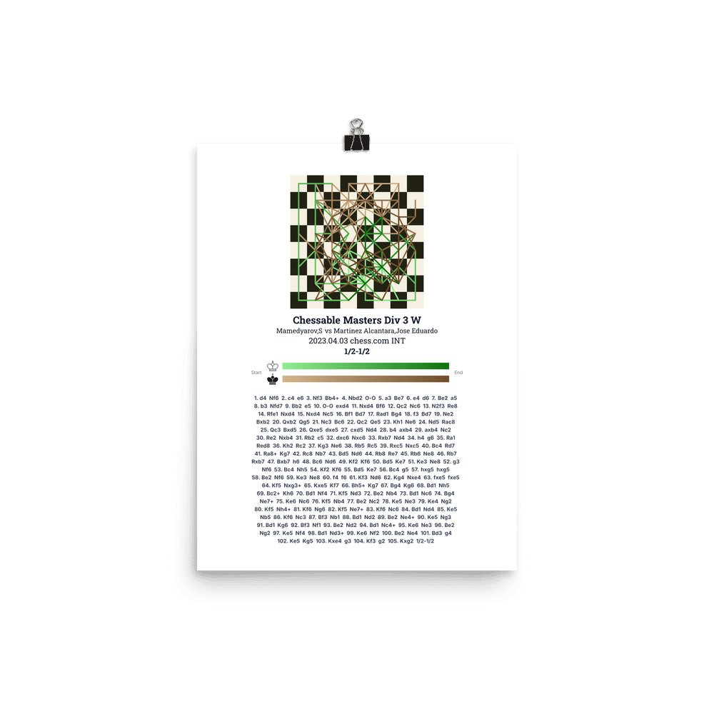 Museum-quality poster on thick, durable matte paper. A sharp, clean look for any chess visualisation.