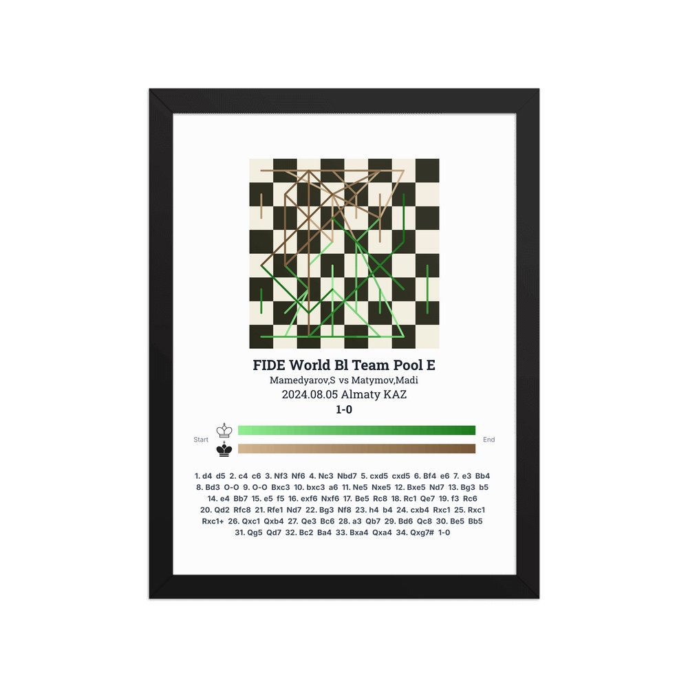 Museum-quality poster on thick, durable matte paper. A sharp, clean look for any chess visualisation.